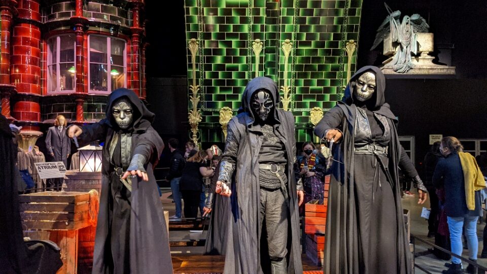 2. Death Eater Encounters: Live actors, costumed as Death Eaters, patrol areas like Diagon Alley and the Studio Tour entrance, interacting menacingly with visitors.