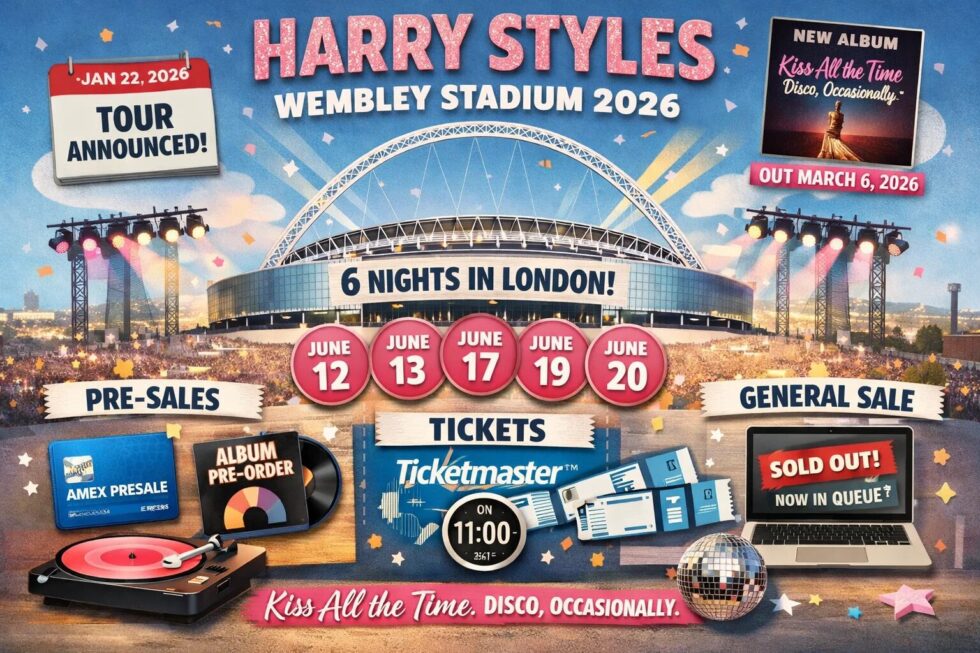 Harry Styles has confirmed six UK stadium concerts at Wembley Stadium in London as part of his 2026 global tour Together, Together, marking his first London performances since the conclusion of Love On Tour in July 2023. The announcement was made on Thursday, 22 January 2026, alongside details of presale access, ticket release schedules, and the rollout of his fourth studio album Kiss All the Time. Disco, Occasionally., due for release on 6 March 2026. The shows are scheduled for 12, 13, 17, 19, 20 and 23 June 2026 and will be hosted at Wembley Stadium Connected by EE. Ticket sales will be managed primarily through Ticketmaster, with multiple presale windows preceding general sale. This is reported by The WP Times, citing Harry Styles.