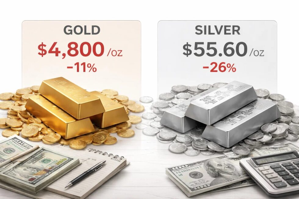- Jan 30, 2026: Prices drop—gold $4,800, silver $100, platinum $1,600